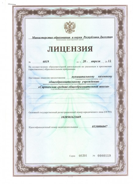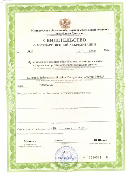 Полное наименование образовательной организации* Муниципальное казенное образовательное учреждение "Сиртичская средняя общеобразовательная школа"