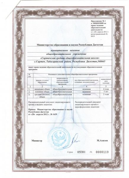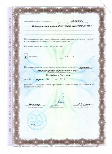 Адрес местонахождения образовательной организации* 368665, Республика Дагестан с.Сиртич, ул.Ленина 33